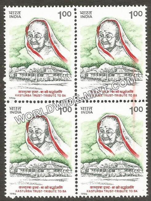 1996 Kasturba Trust - Tribute To Ba Block of 4 MNH