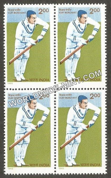 1996 Cricketers of India-Vijay Merchant Block of 4 MNH