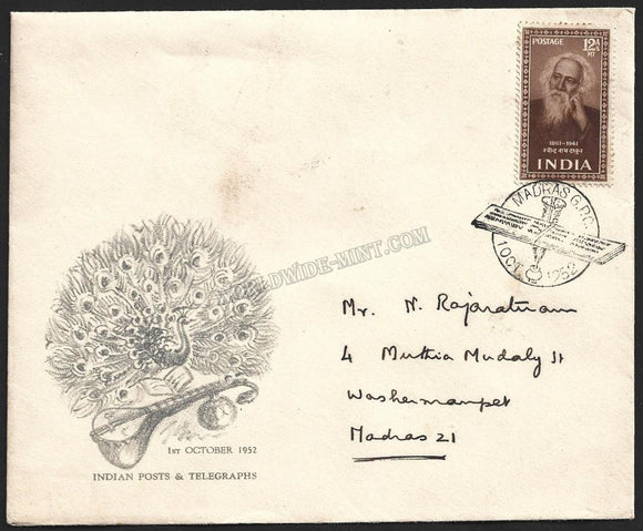 1952 INDIA Saints and Poets - Rabindranath Tagore 1v FDC