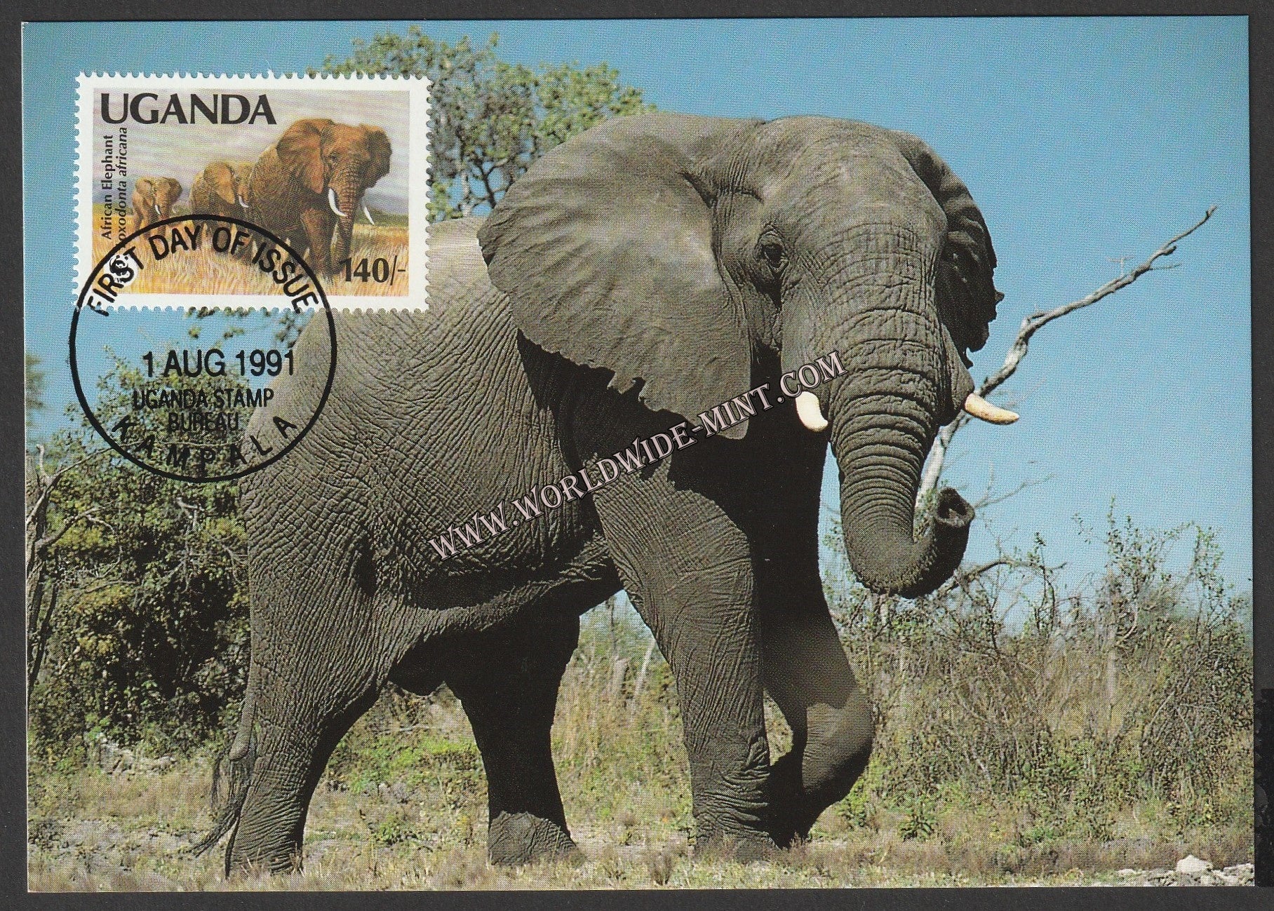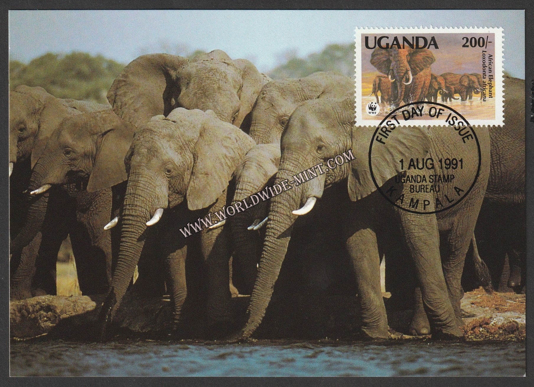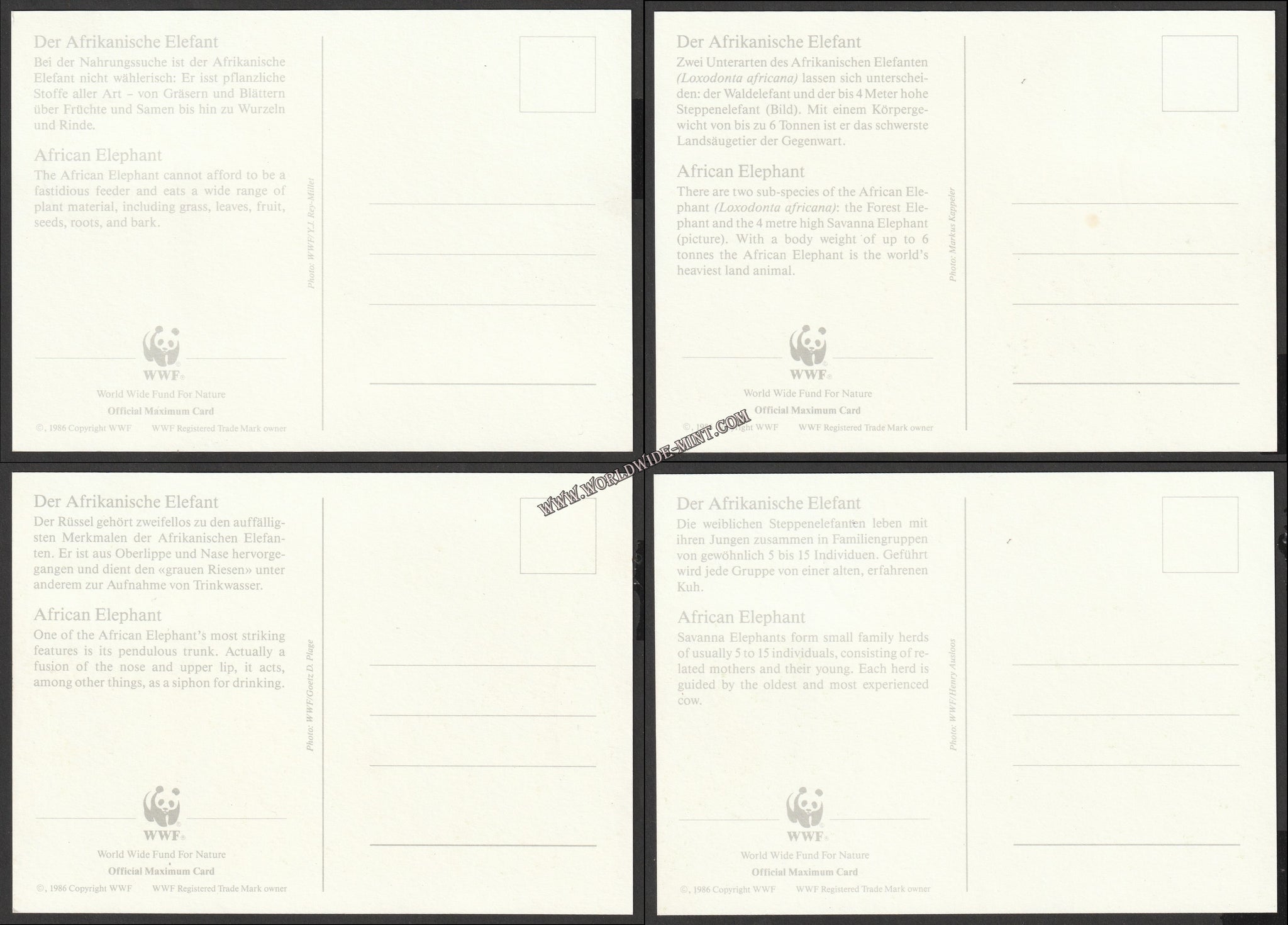 1991 Uganda African Elephant Set of 4 WWF Official Maxim card #FE263
