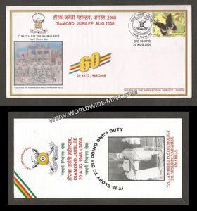 2008 India 8TH BATTALION THE MADRAS REGIMENT DIAMOND JUBILEE APS Cover (20.08.2008)