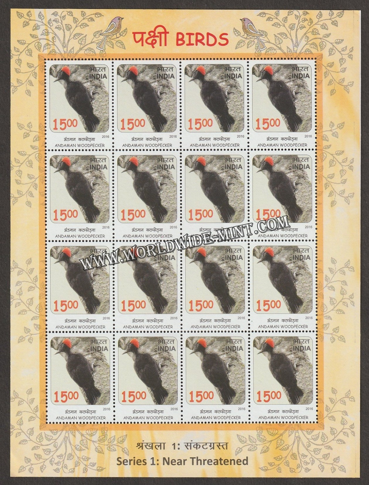 2016 INDIA Near Threatened Birds - Andaman Woodpecker Sheetlet