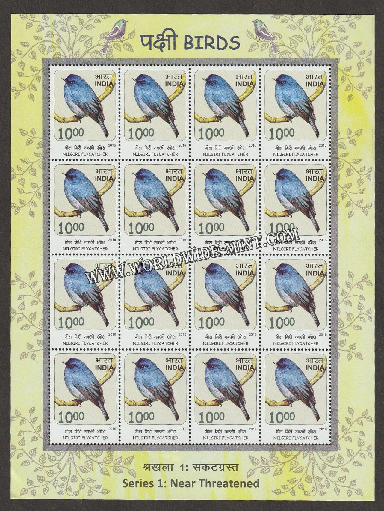 2016 INDIA Near Threatened Birds - Nilgiri Flycatcher Sheetlet