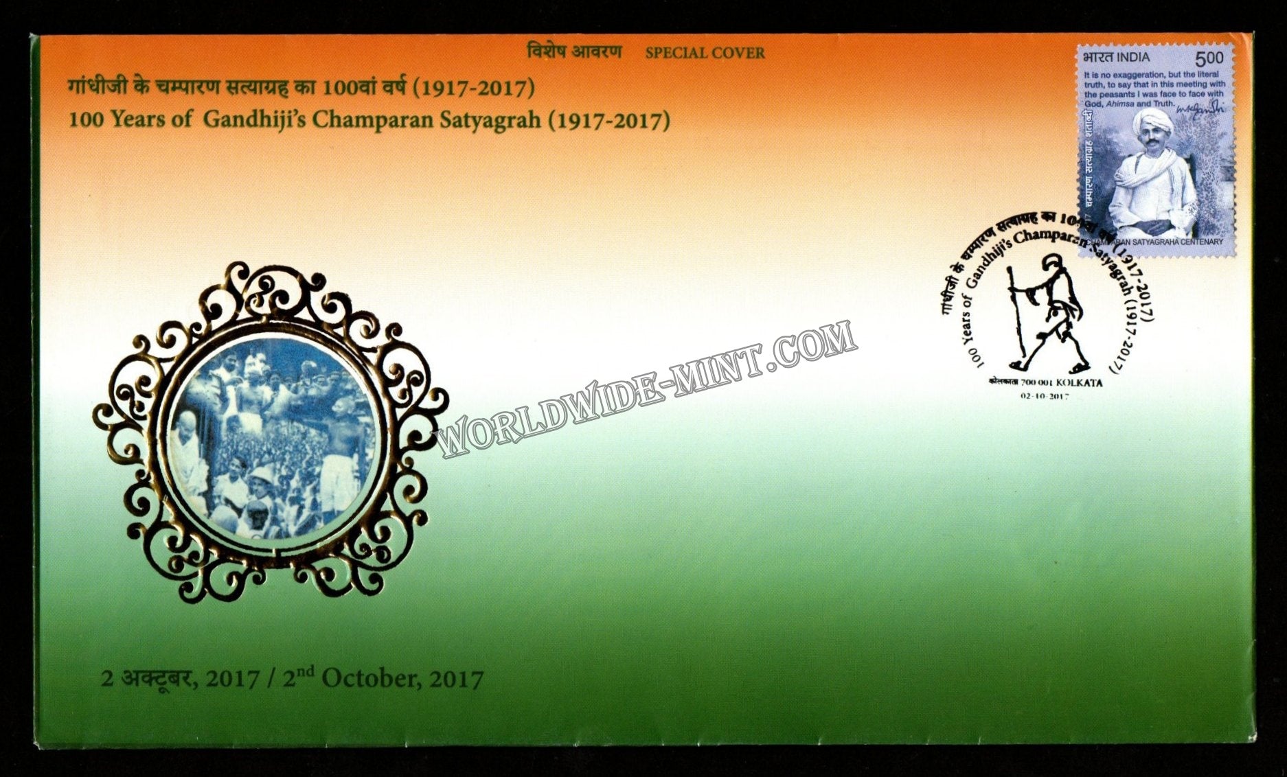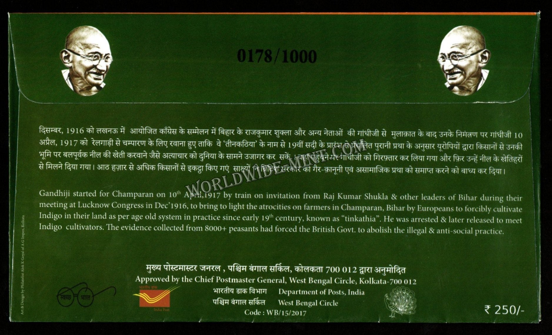 2017 100 Years Of Gandhiji's Champaran Satyagrah Special Cover - Printed Picture Affixed Glossy Finish - Limited Print of 1000 (02.10.2017) #SC-379