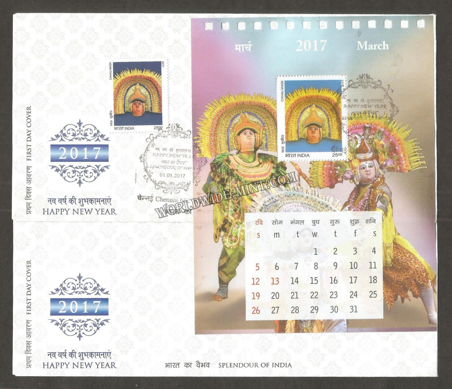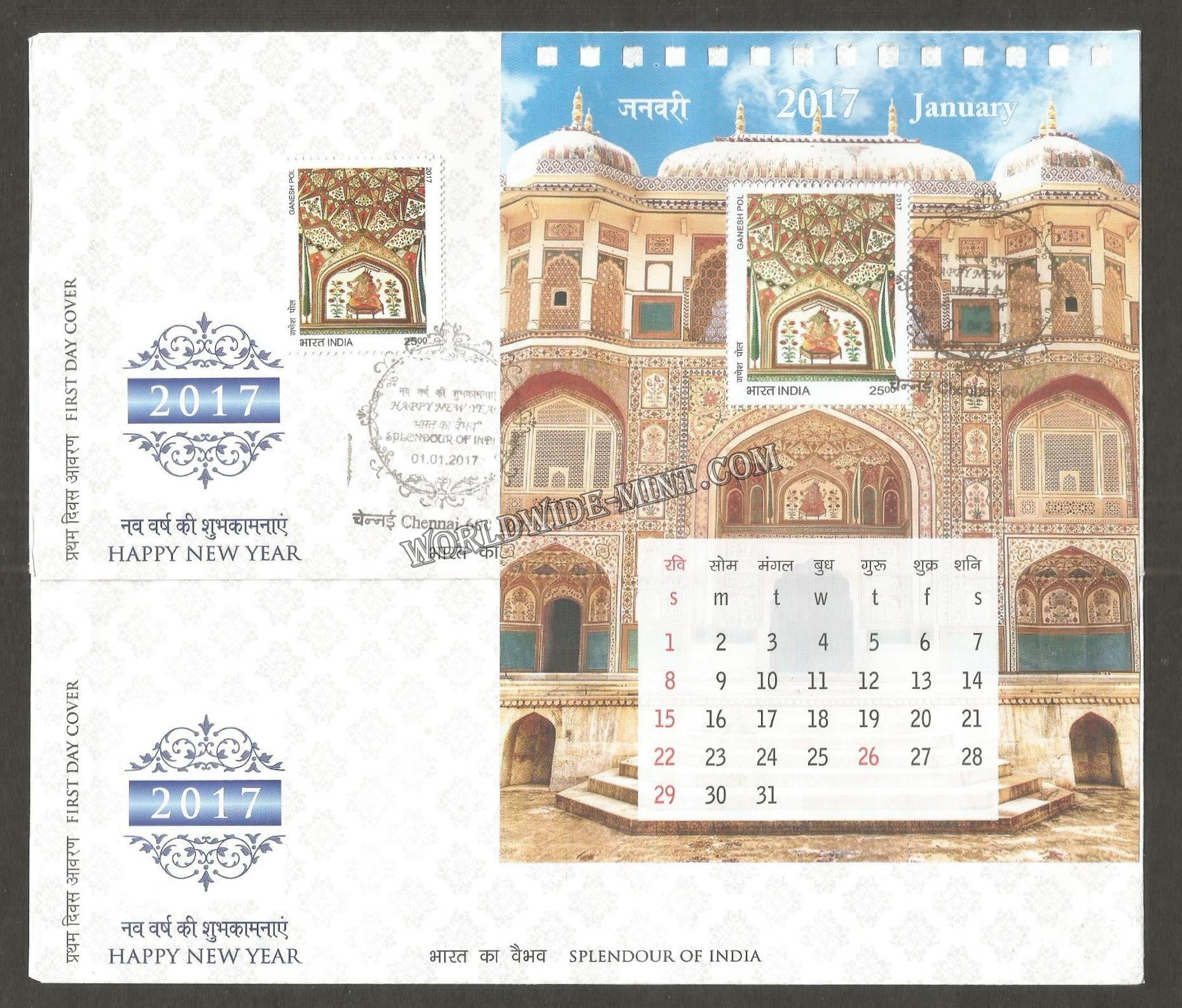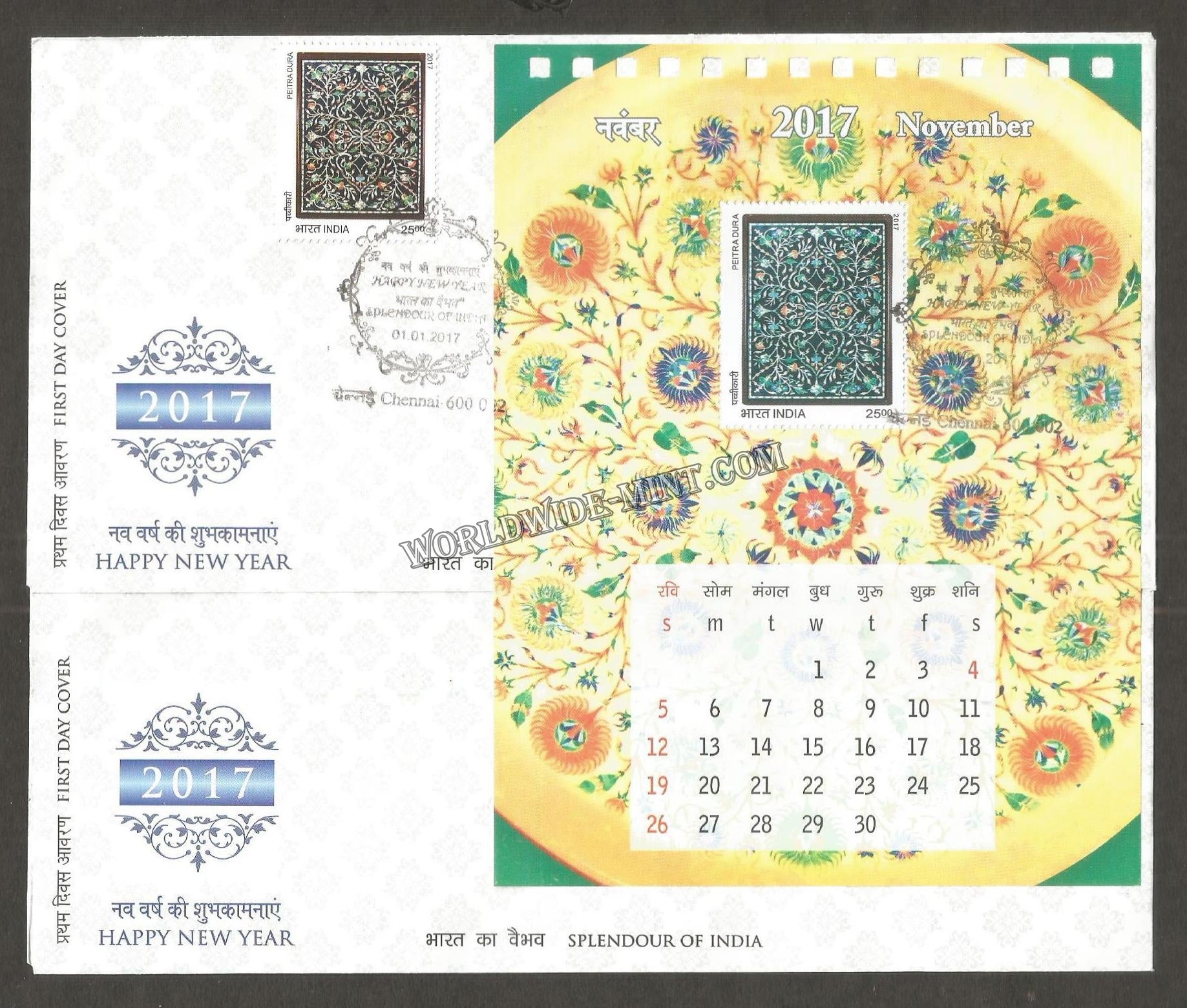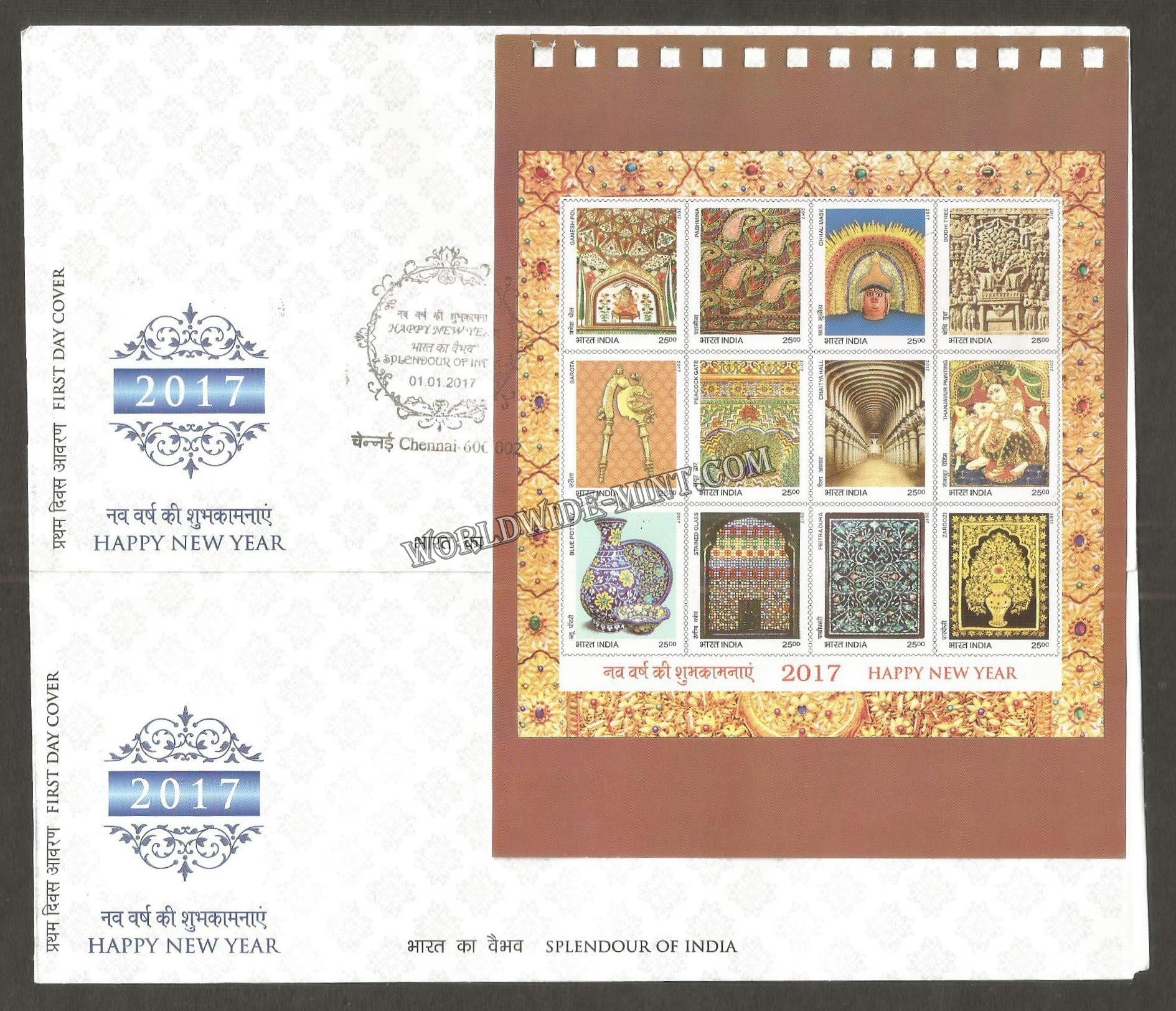 2017 INDIA Splendours of India - Happy New Year Miniature Sheet & 12v Stamp FDC with Label