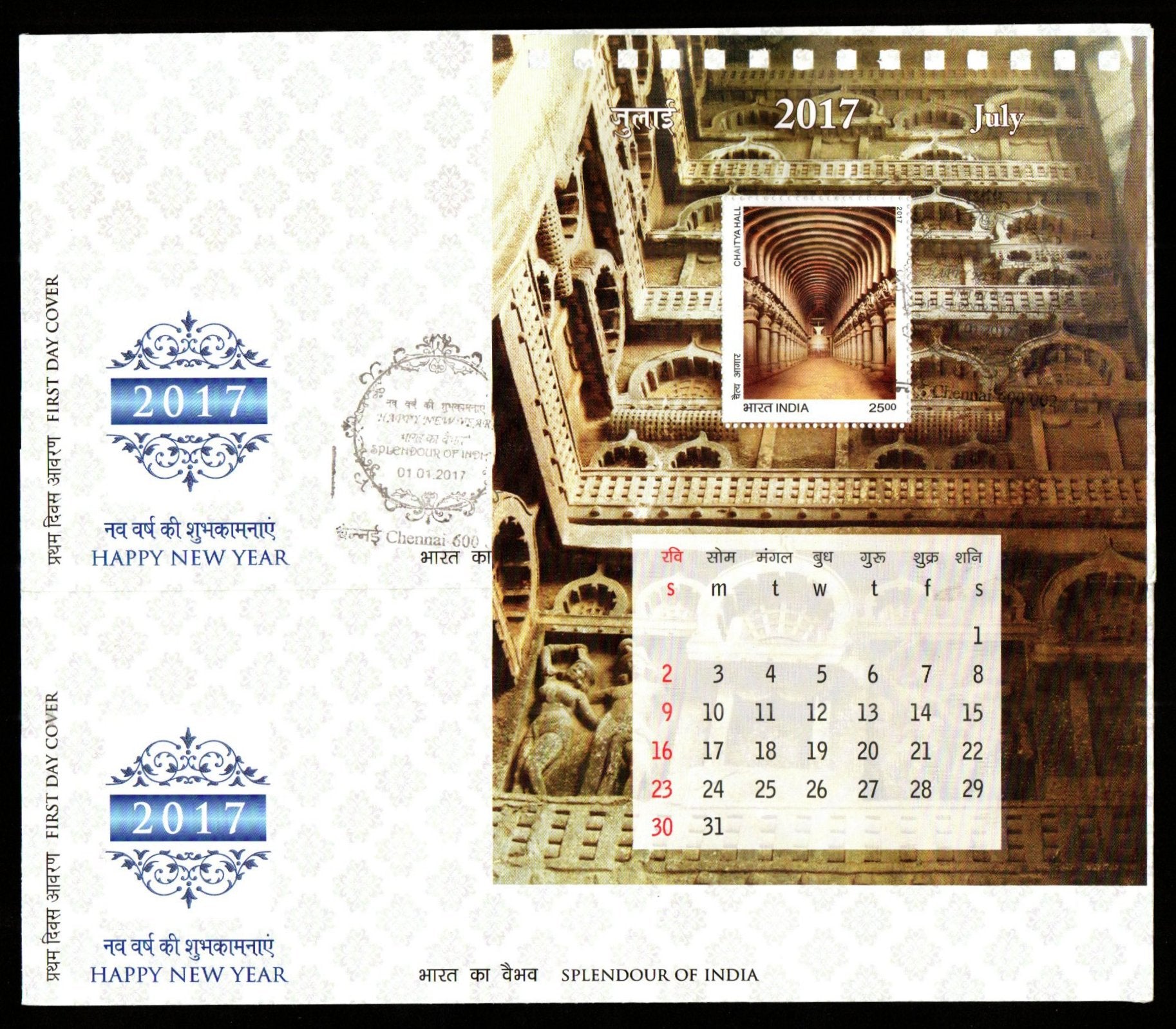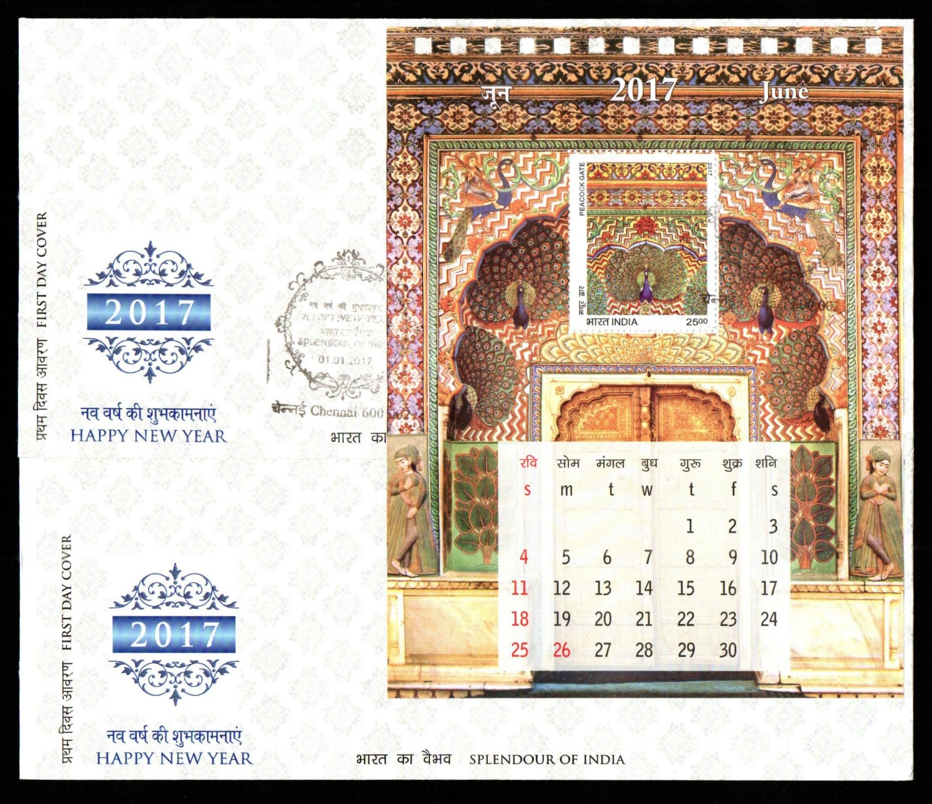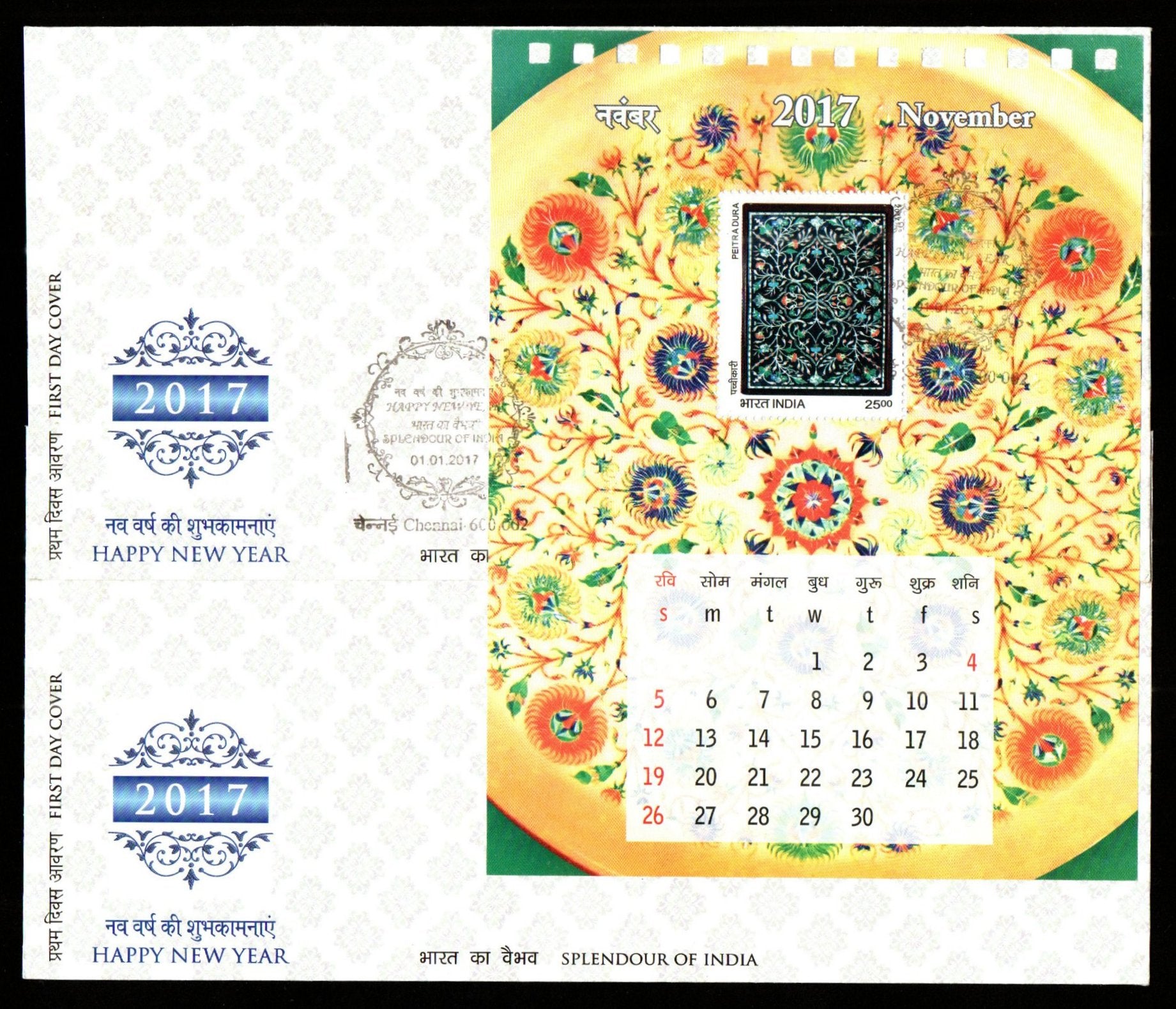 2017 INDIA Splendours of India - Happy New Year Miniature Sheet FDC with Label