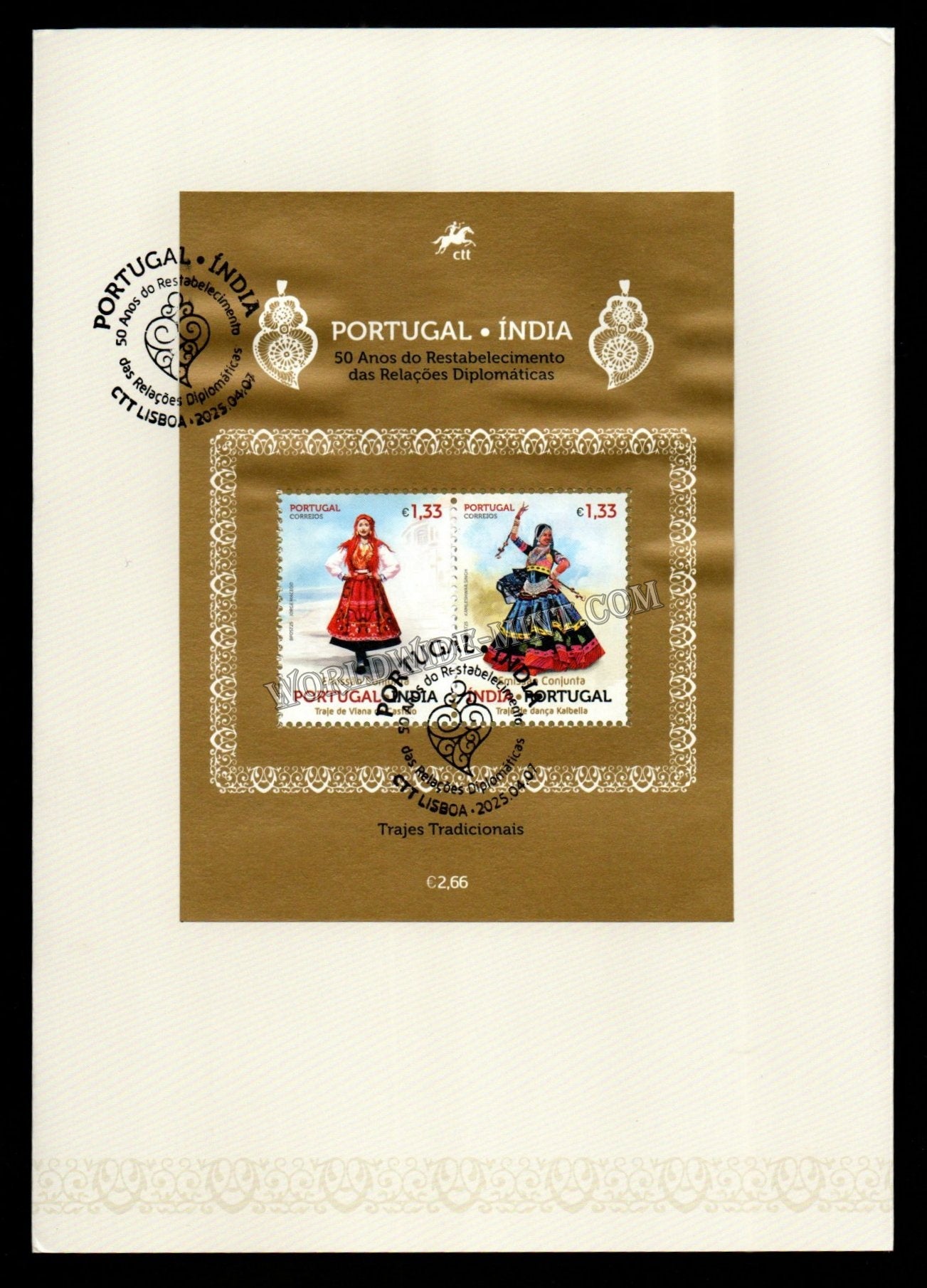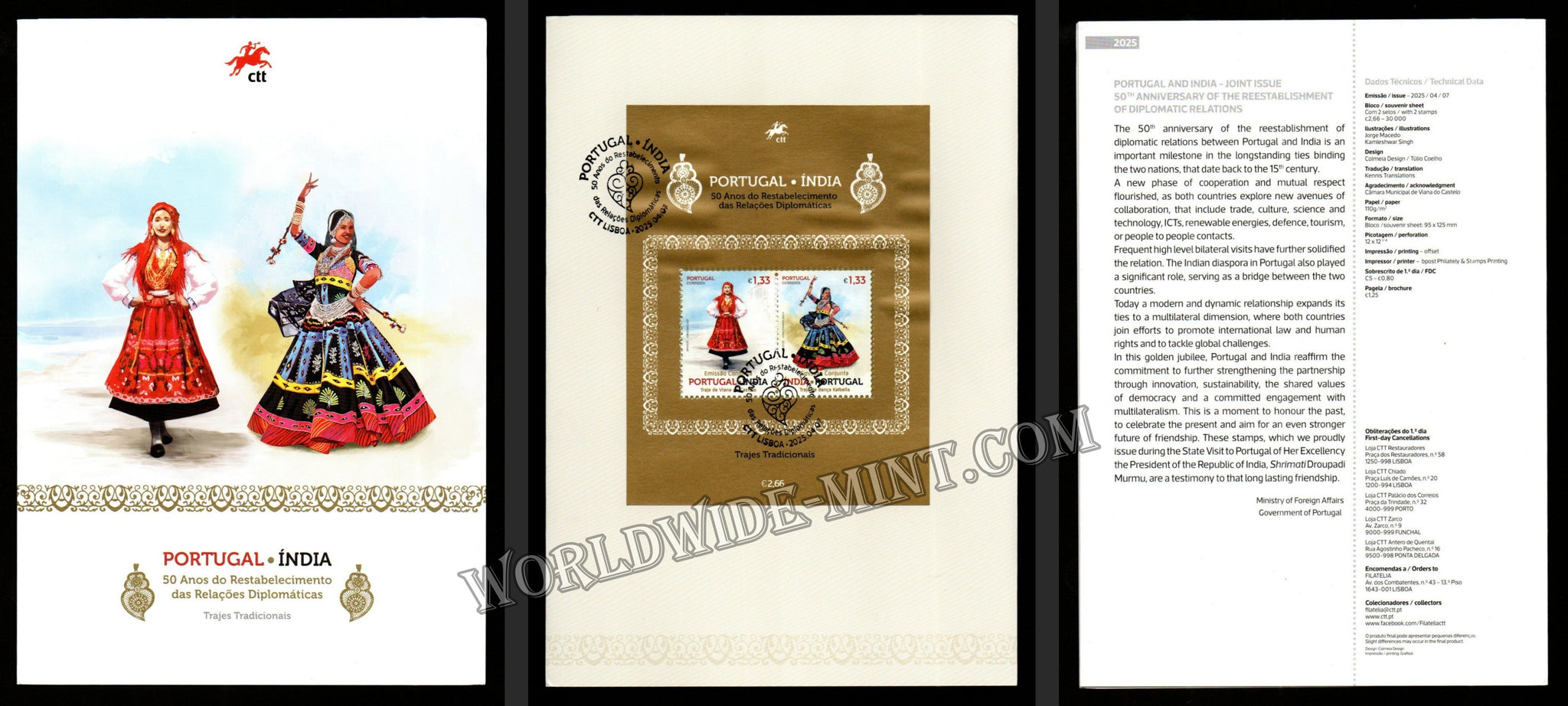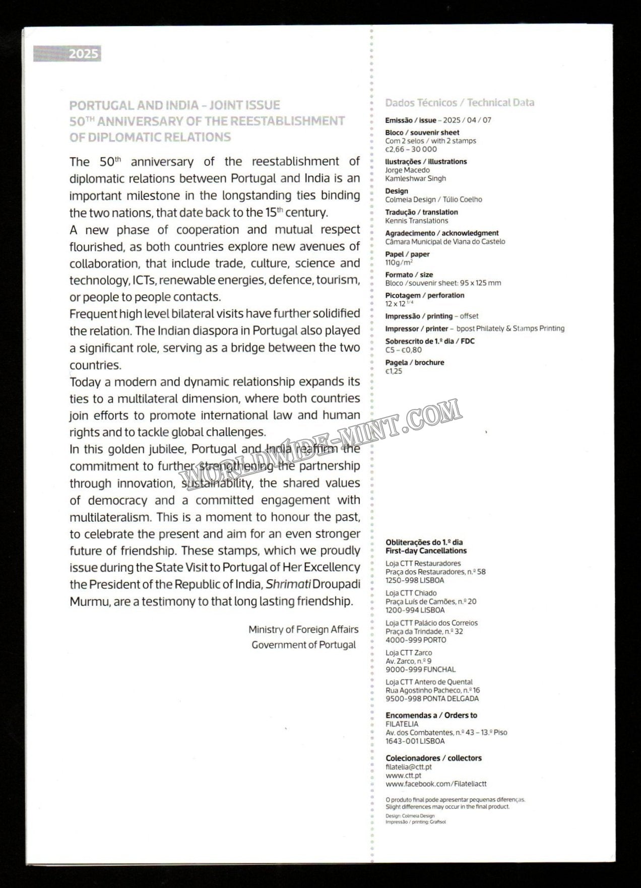 2025 Portugal INDIA 50 Years of reestablishment of Diplomatic Relations - Joint Issue Tied MS Cancelled Presentation Pack