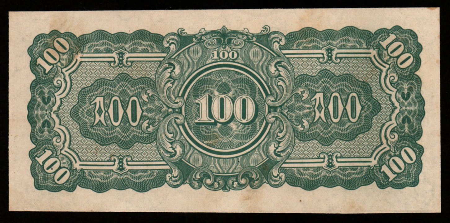 Burma (MYANMAR) WWII - JAPANESE OCCUPATION - 100 RUPEES 1944 P#17a; Block letters: BA; Watermark; BA 7.25 mm wide XF+ Bank Note #UCN999