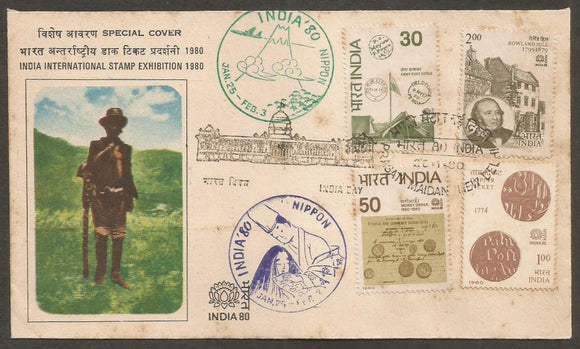 India International Stamp Exhibition 1980 - India Day with 2 NIPPON Cancellation Special Cover #DL5