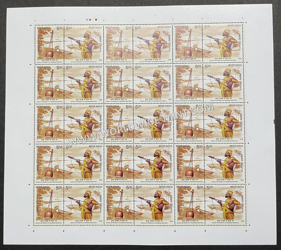 2020 INDIA Musical Instruments of Wandering Minstrels-Ektara Setenant Full Sheet MNH