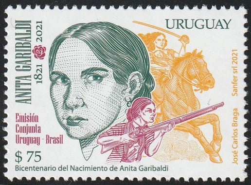 2021 Uruguay The 200th Anniversary of the Birth of Anita Garibaldi, (Brazilian revolutionary) 1821-1849 MNH #FOR-1012