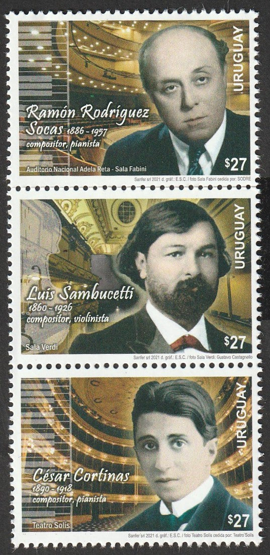 2021 Uruguay National Composers Set of 3 MNH #FOR-997