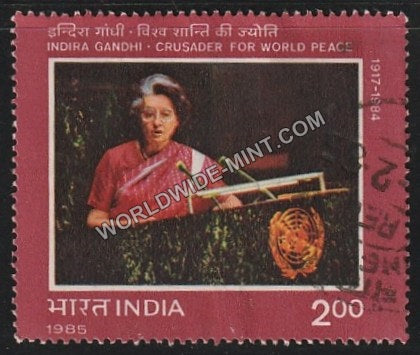 1985 Indira Gandhi : Crusader for World Peace Used Stamp