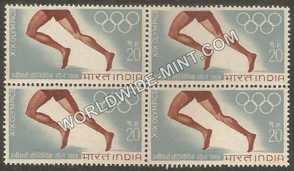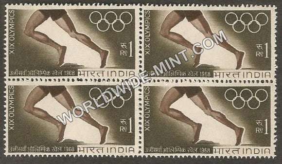 1968 XIX Olympics-1 Rupee Block of 4 MNH