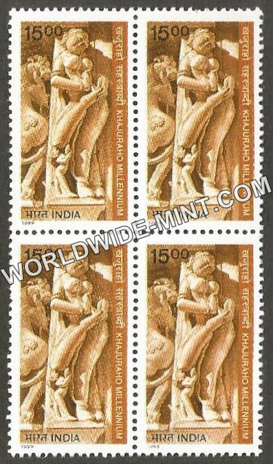1999 Khajuraho (Temples) Millennium Block of 4 MNH