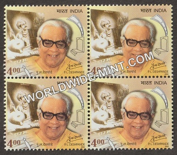 2002 P L Deshpande Block of 4 MNH