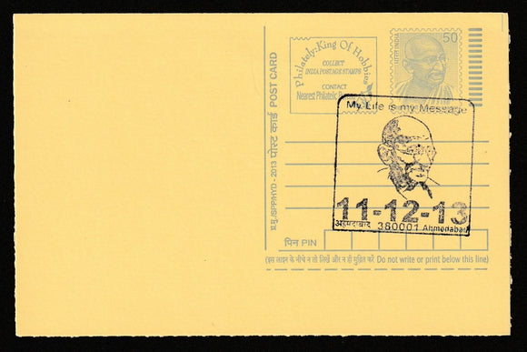 2013 Gandhi Portrait My Life My Cancelled Message Post Card #C-MPC-2