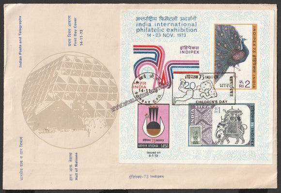 1973 INDIA Indipex 73 India International Philatelic Exhibition Miniature Sheet FDC