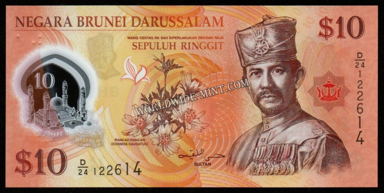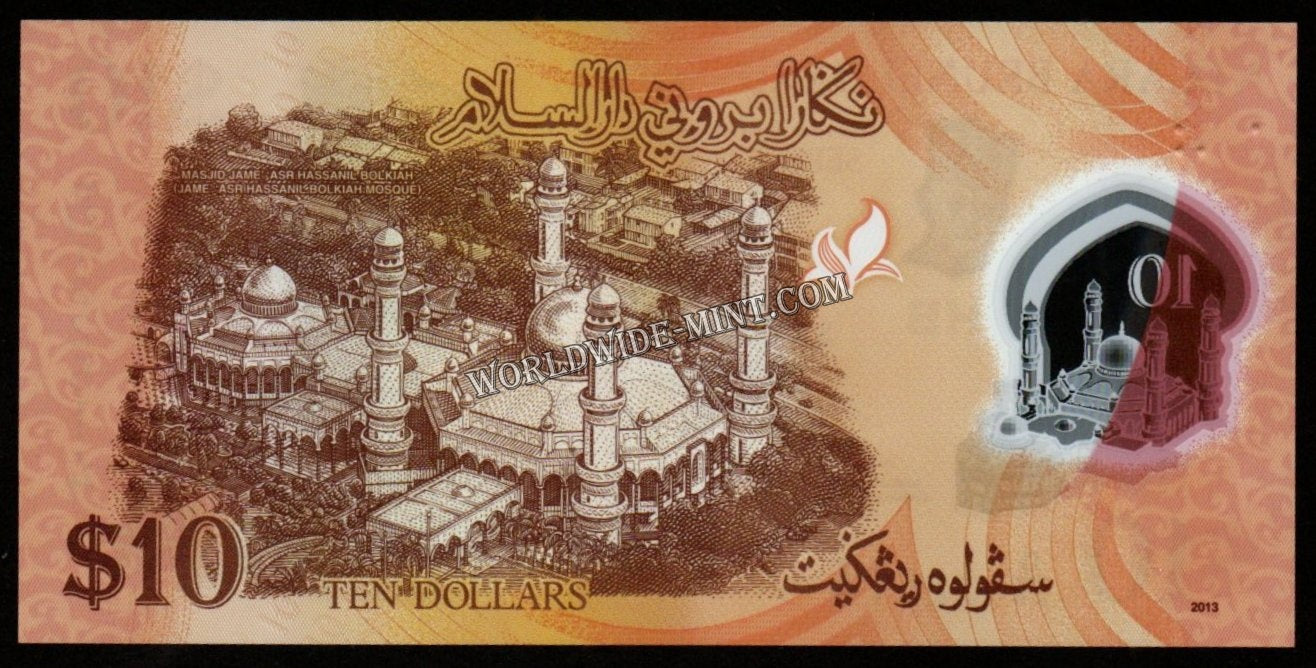 Brunei 10 Ringgit 2013 Polymer UNC Bank Note #CN1137