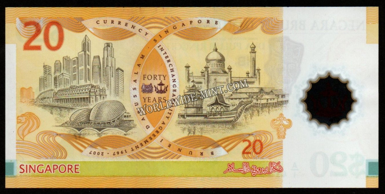Brunei 20 Ringgit 2007 - 40 Years of Currency Interchangeability - Commemorative issue - Polymer UNC Bank Note #CN1141