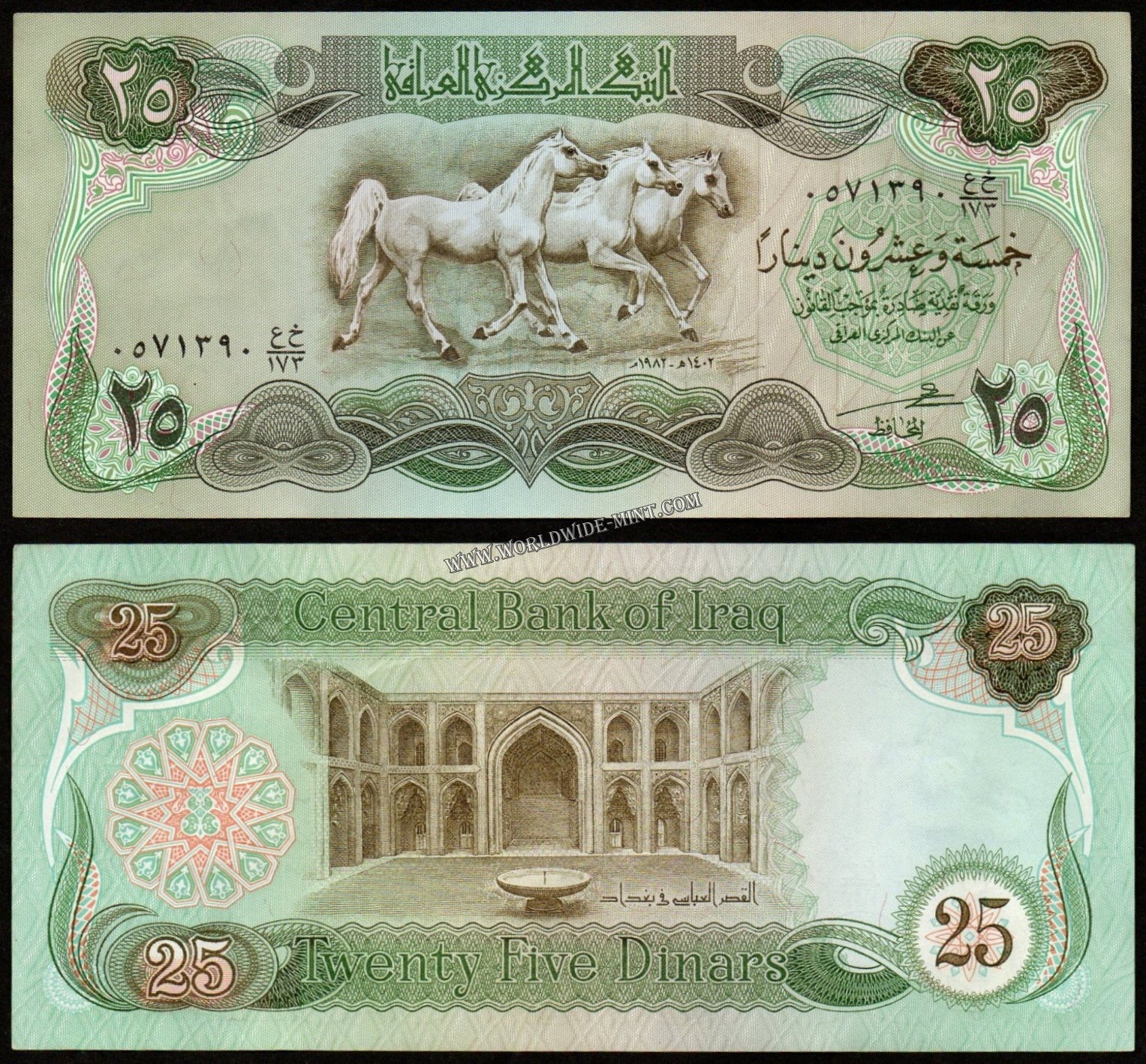 Iraq 25 Dinars 1981- 1982 UNC Banknote N#204090