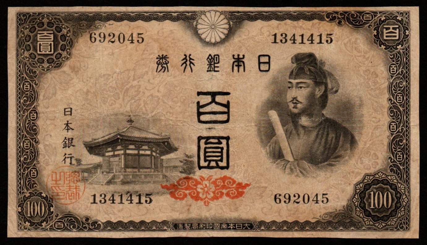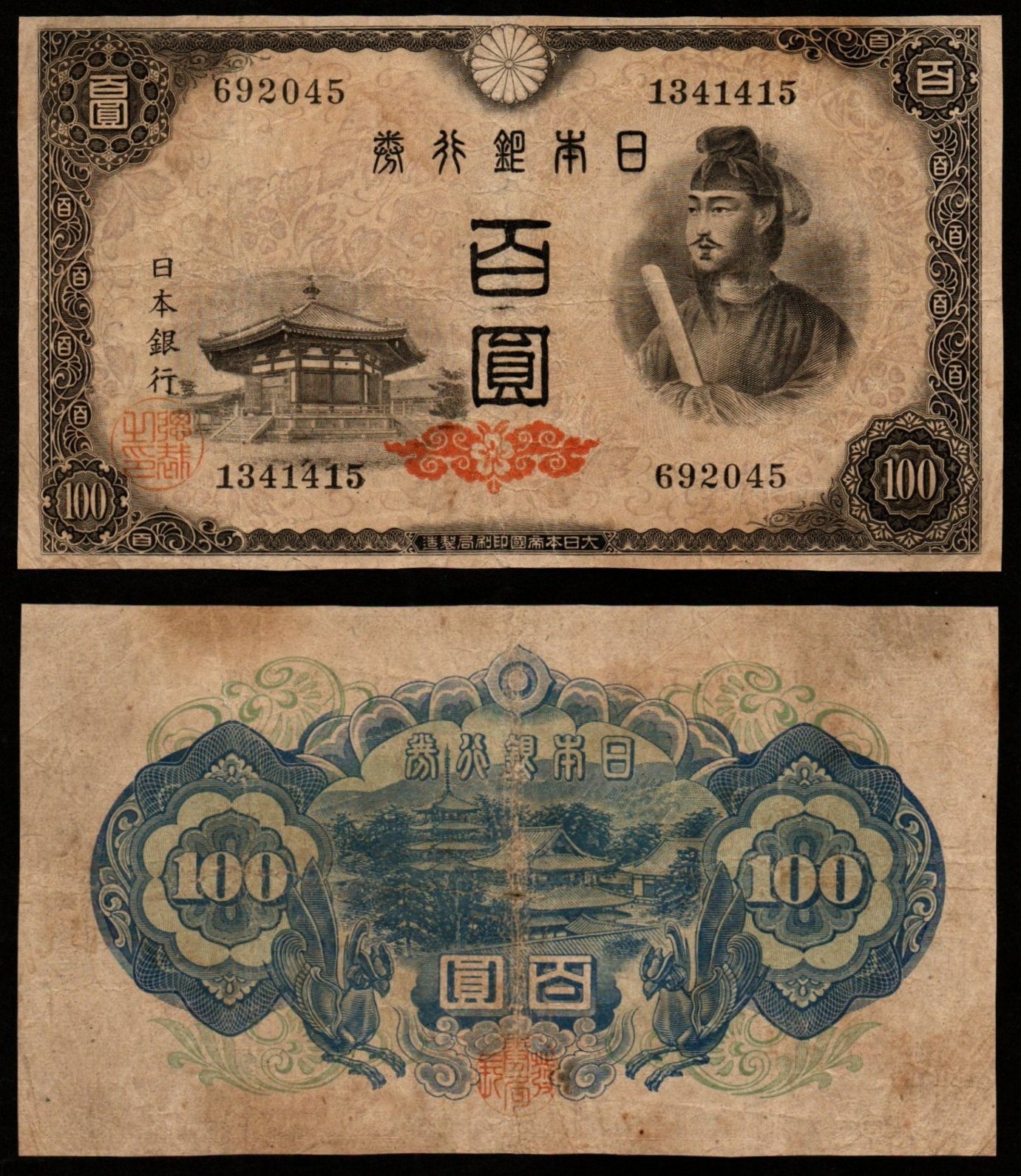 Japan 100 Yen 1946 (Kiri leaves watermark) Fair Banknote #UCN963