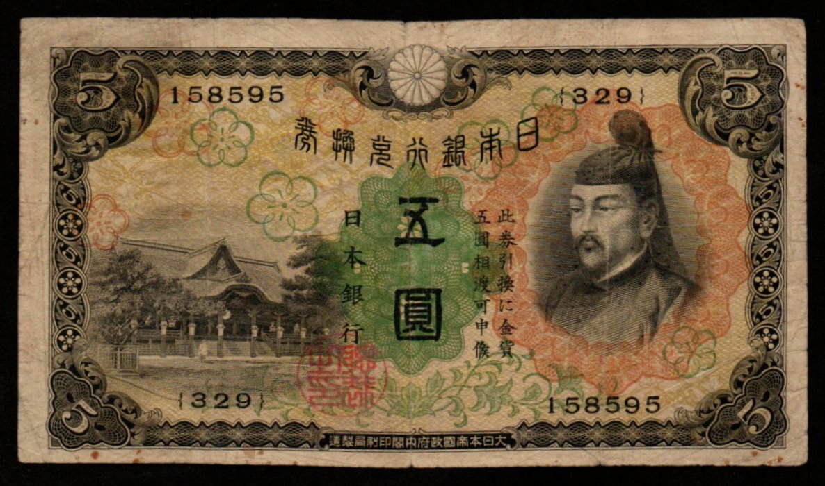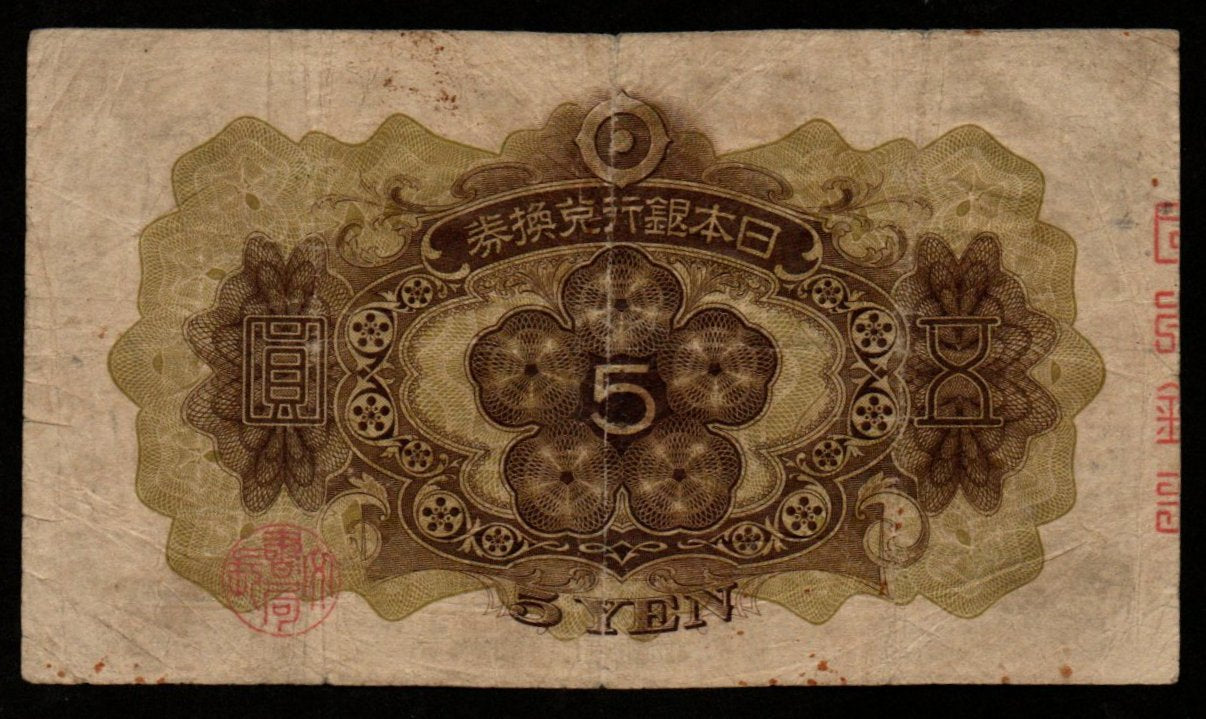 Japan 5 yen 1930 Fine Banknote #UCN978