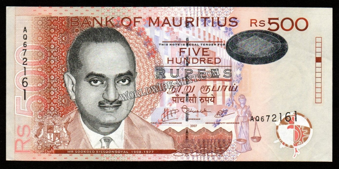 Mauritius 500 Rupees 2007 UNC Bank Note #CN1081