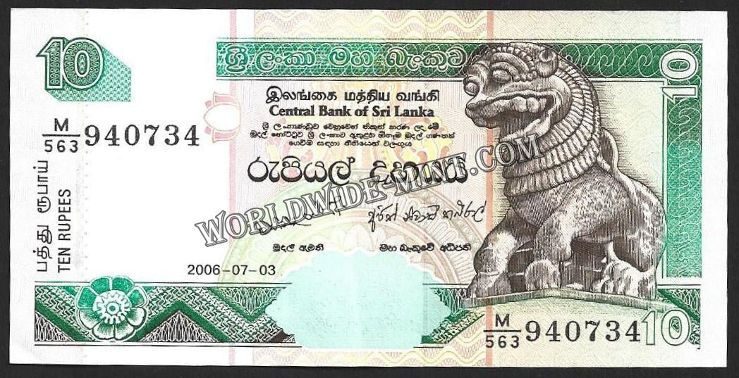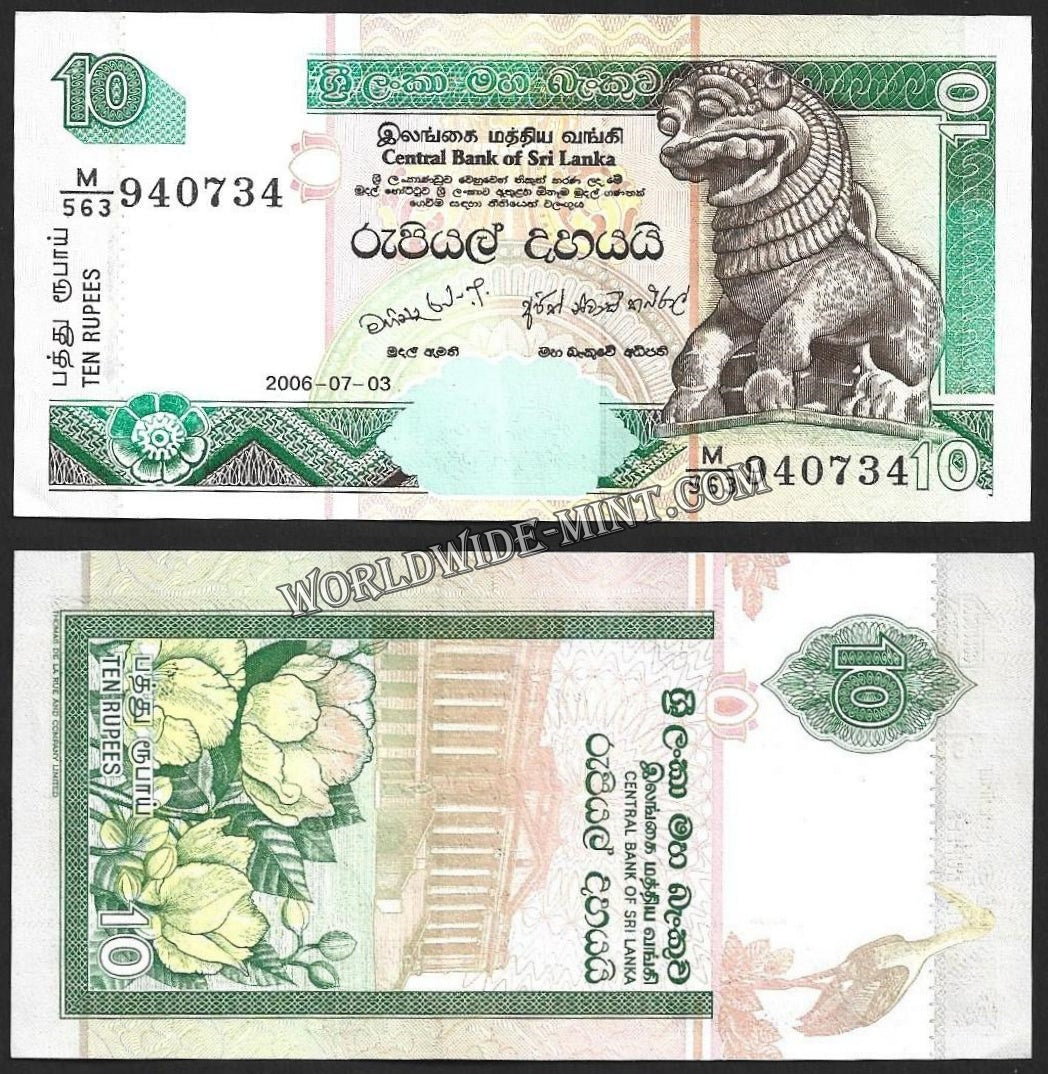 SRI LANKA 2006 - 10 RUPEES P- 108f UNC Bank NOTE N#203323