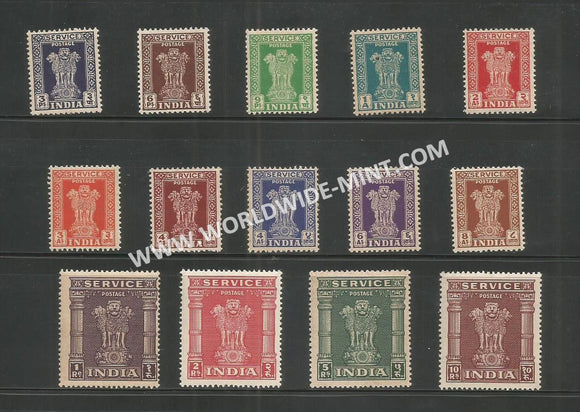 1950 - 1951 India Ashoka Lion Capital Service Stamp - Multi Star Watermark - Set of 14 MNH