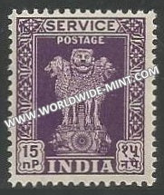 1957 - 1958 India Ashoka Lion Capital Service Stamp - 15np Multi Star Watermark - Typo MNH