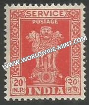 1957 - 1958 India Ashoka Lion Capital Service Stamp - 20np Multi Star Watermark - Typo MNH