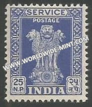 1957 - 1958 India Ashoka Lion Capital Service Stamp - 25np Multi Star Watermark - Typo MNH