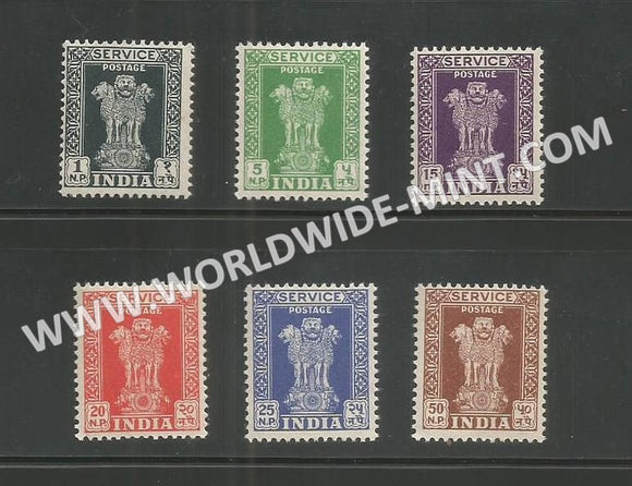 1957 - 1958 India Ashoka Lion Capital Service Stamp - Multi Star Watermark - Litho - Simplified Set of 6 MNH