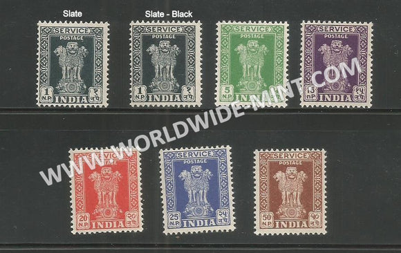 1957 - 1958 India Ashoka Lion Capital Service Stamp - Multi Star Watermark - Litho - Detailed Set of 7 MNH