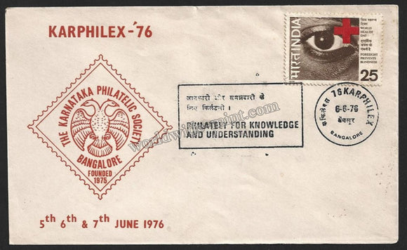 1976 Karphilex 76 Philatelic Society Bangalore - Philately For Knowledge and Understanding - Karnataka Special Cover #KA25