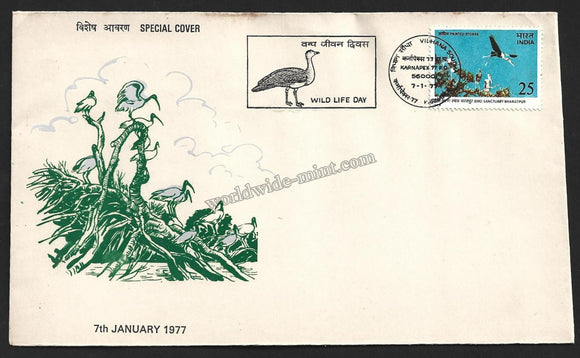 1977 Karnapex ' 77 Vidhana Soudha - Wild Life Day (Bird Sanctuary, Ranganathittu - Heron) Karnataka Special Cover #KA32