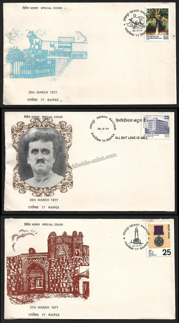 1976 Mangalapex 76 Mangalore Set of 3 Karnataka Special Cover #KA17