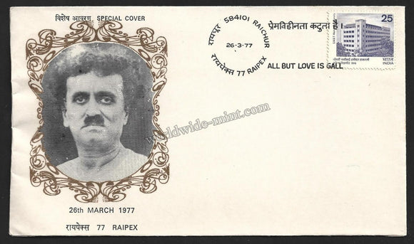 1977 Karnapex ' 77 Vidhana Soudha - Inaugural day (Oldest Post office in the State) - Karnataka Special Cover #KA30