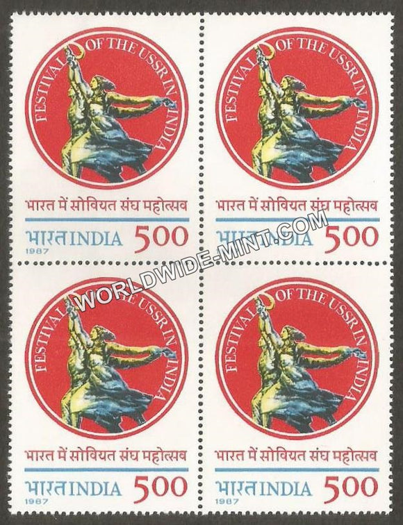 1987 India-89 (World Philatelic Exhibition)-Set of 4 Block of 4 MNH