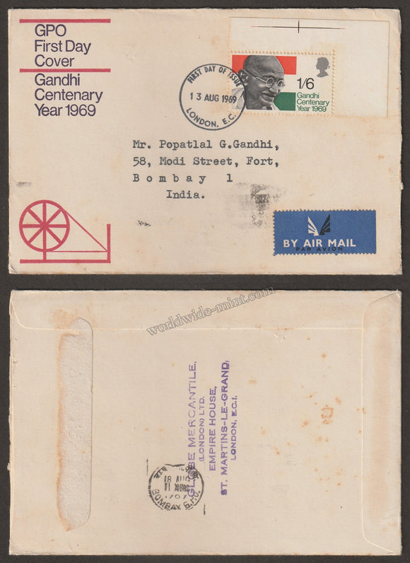 1969 Great Britain Gandhi FDC - Commercial Cover From London to Bombay #Gan400