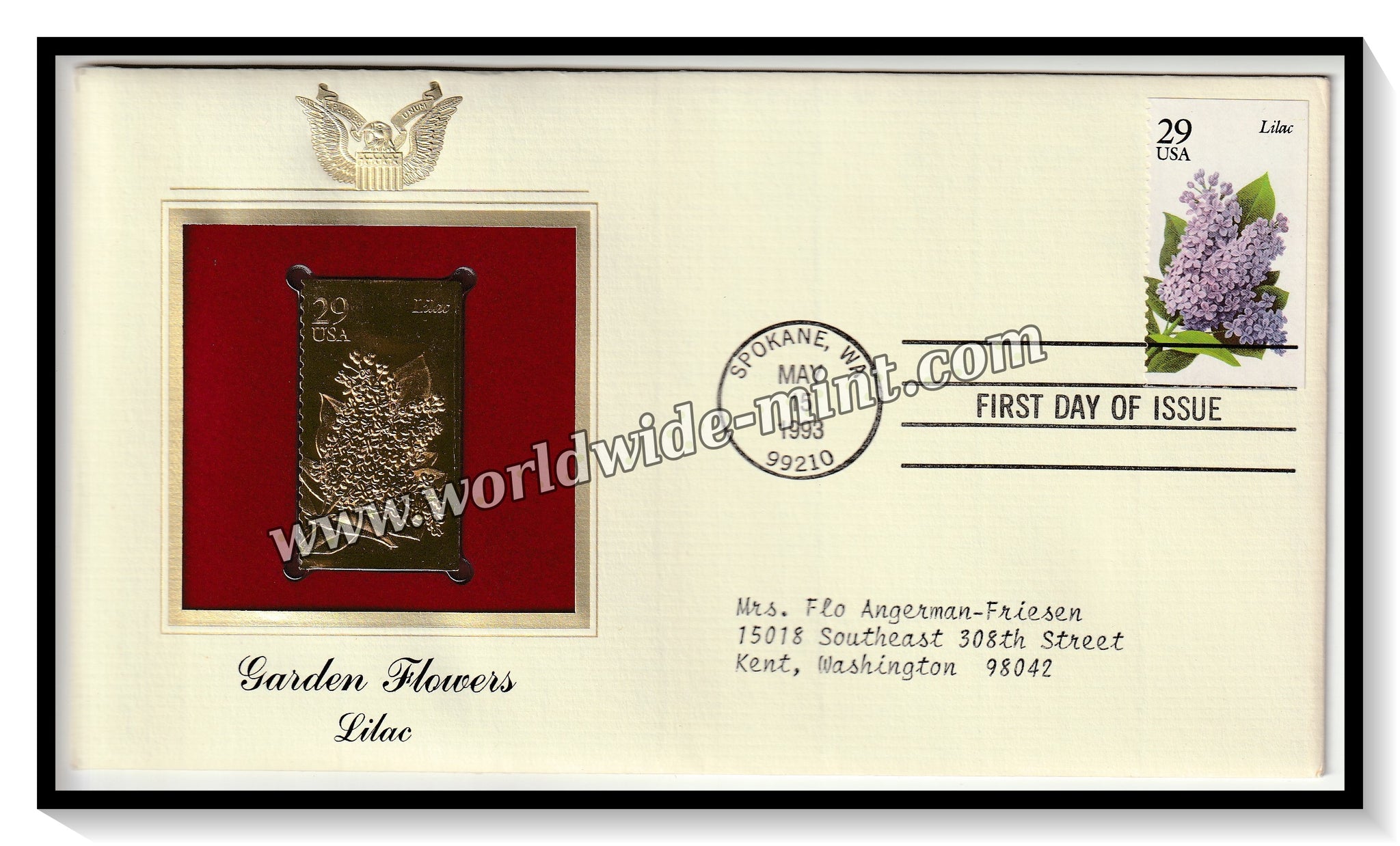 1993 USA Garden Flowers Lilac - Gold Replica FDC #FE88