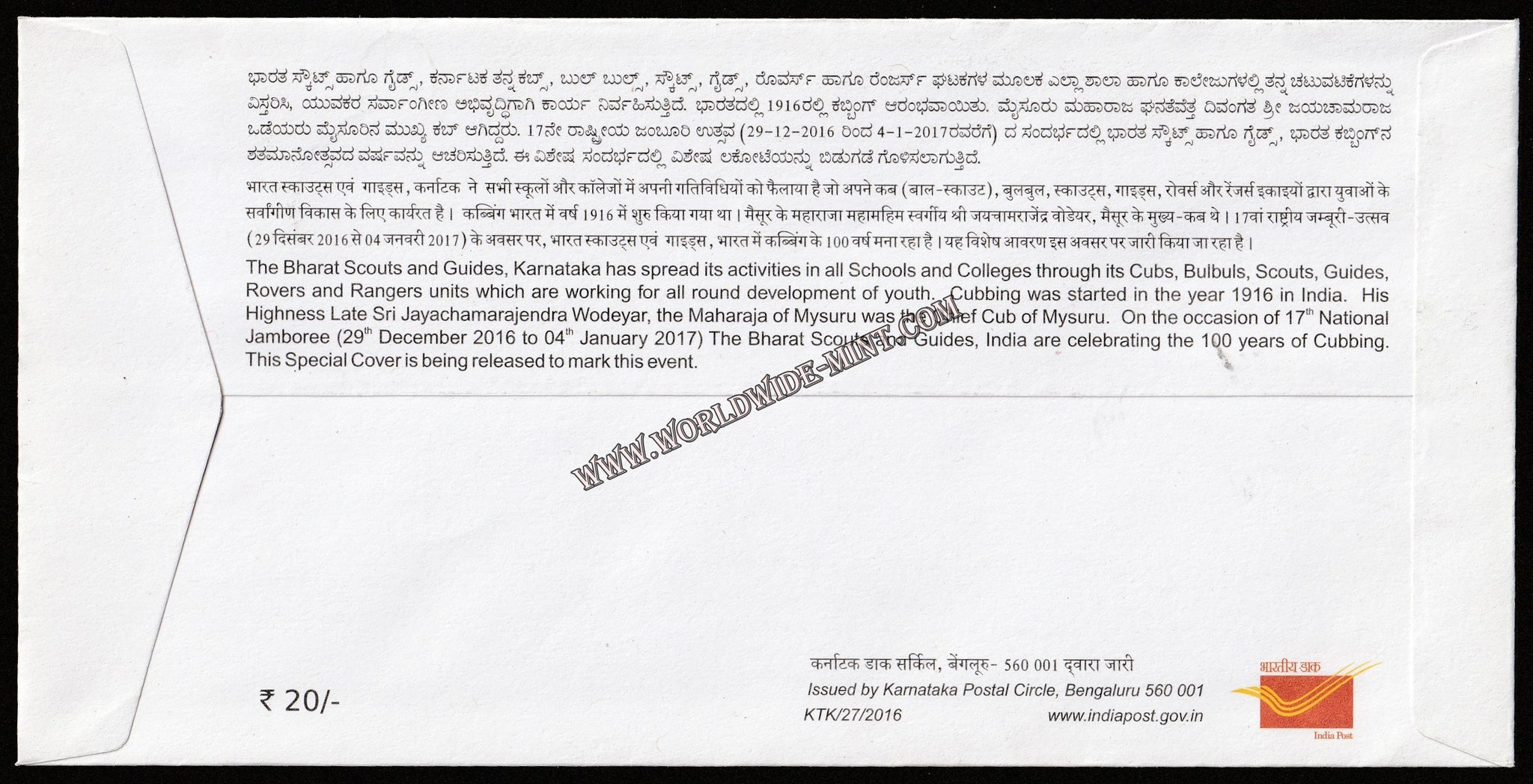 2016 The Bharat Scouts & Guides Centenary Year of Cubbing Special Cover #SPL-245