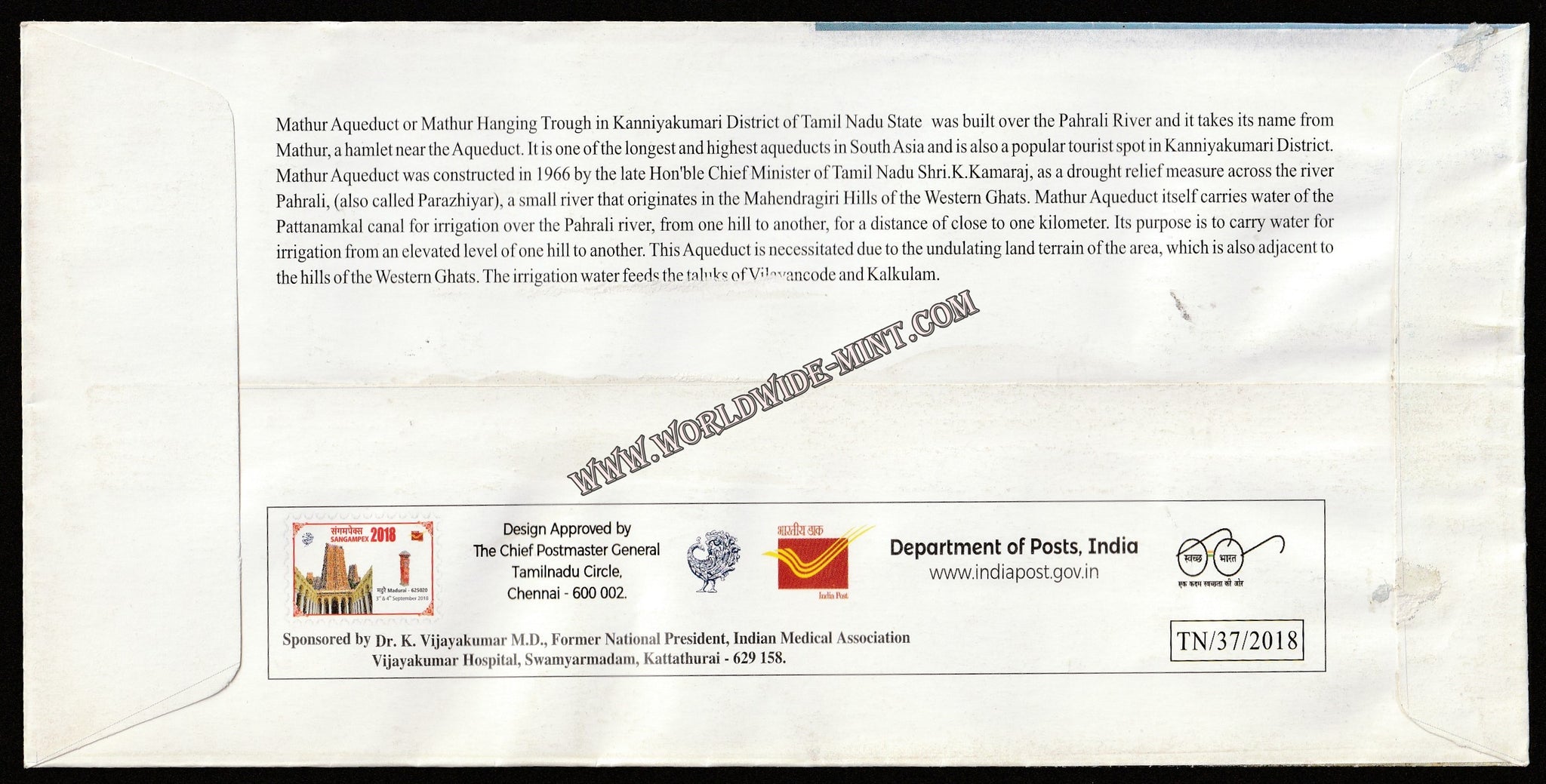 2018 SANGAMPEX Mathur Aqueduct Special Cover #SPL-273