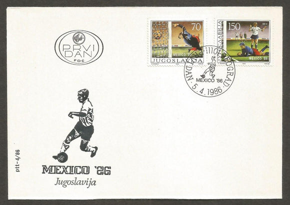 1986 Yugoslavia - Mexico Football FDC #FB187