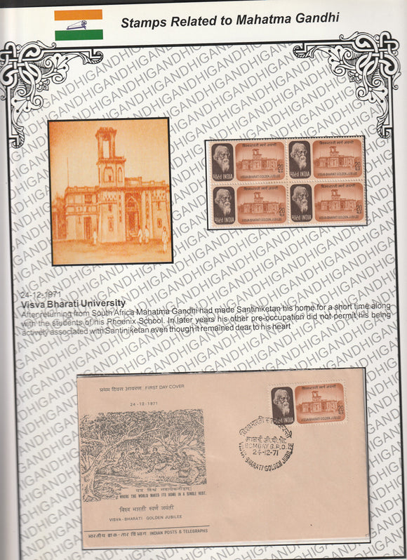 1971 Visva Bharati University Block of 4 MNH & FDC Exhibit Sheet
