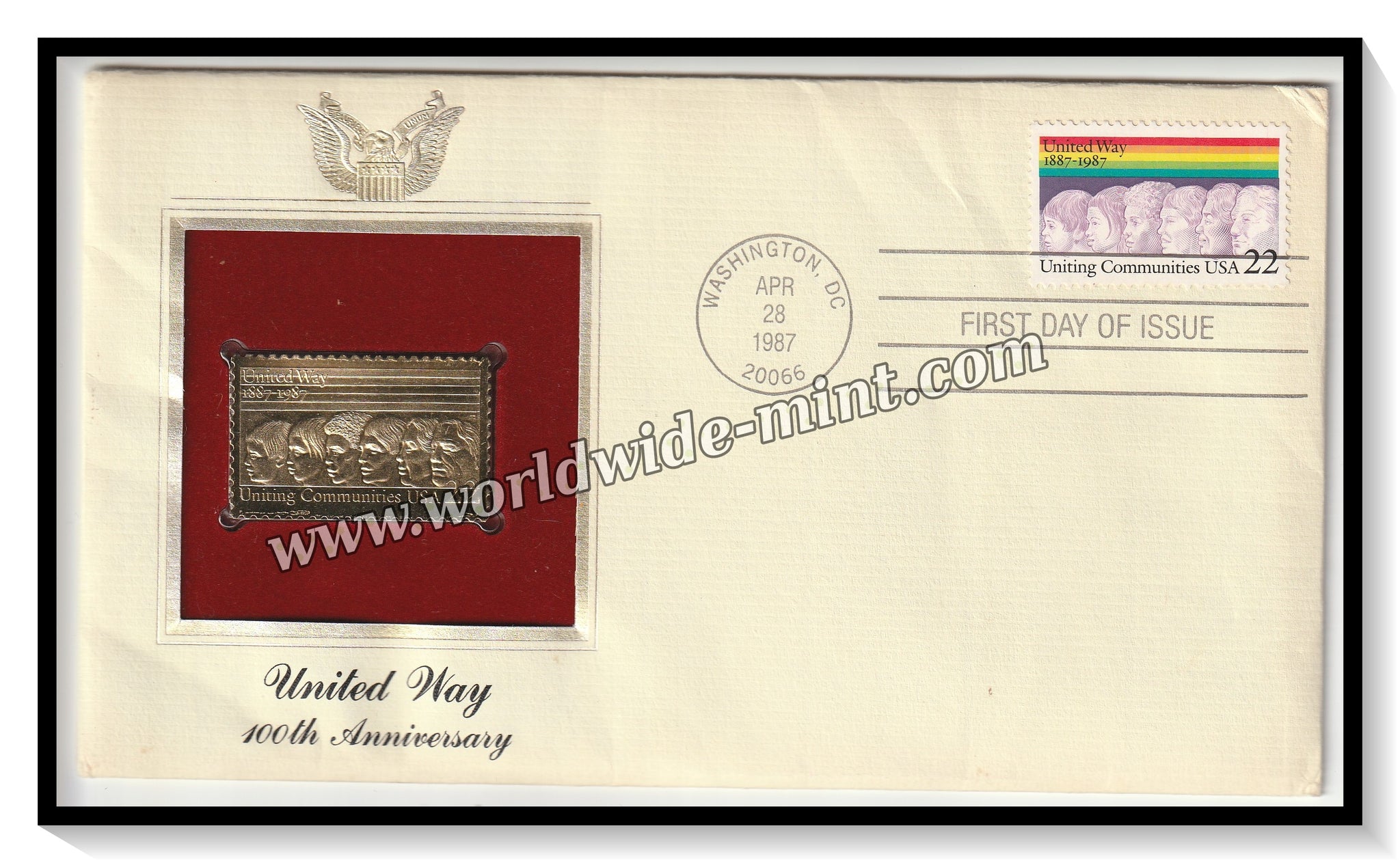 1987 USA United Way 100th Anniversary - Gold Replica FDC #FE100