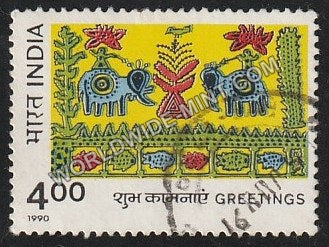 1990 Greetings-Ceremonial Elephants Used Stamp
