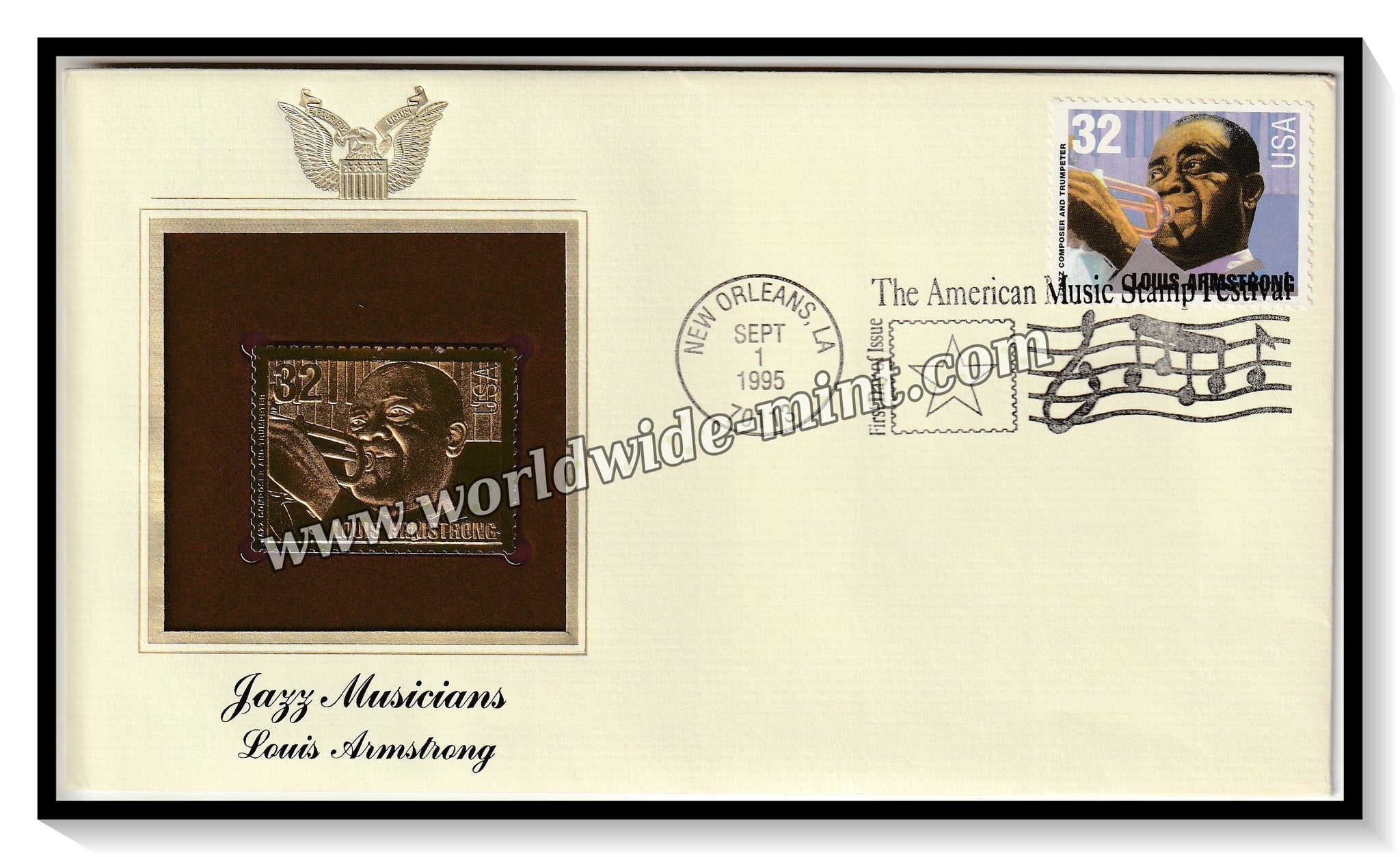 1995 USA Jazz Musicians Louis Armstrong - Gold Replica FDC #FE94