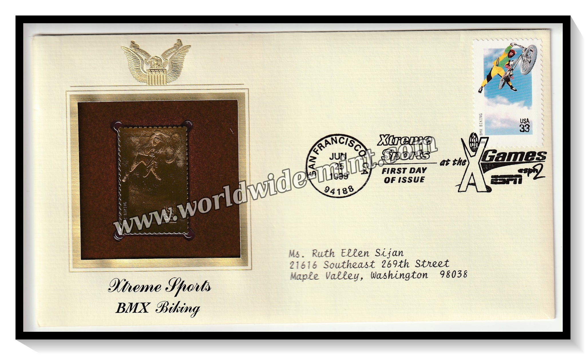 1999 USA Xtreme Sports BMX Biking - Gold Replica FDC #FE10